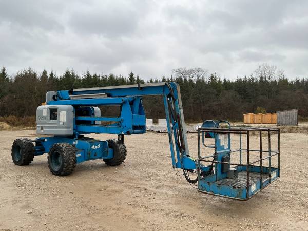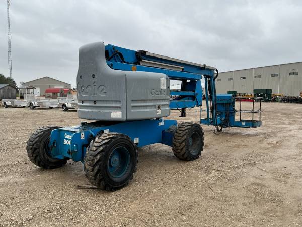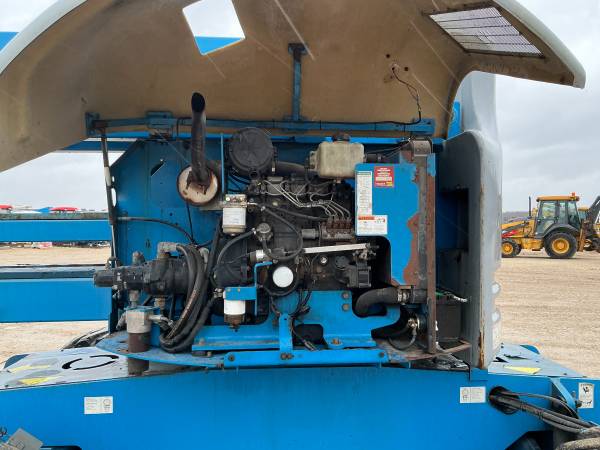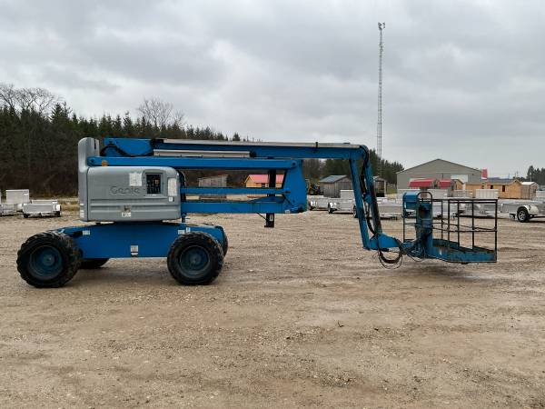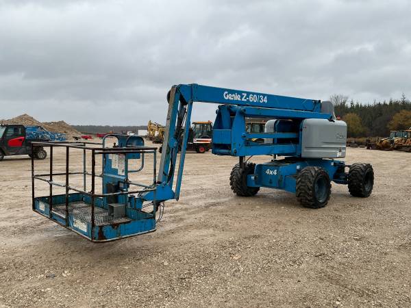 Articulating man lift, 2008 Genie model Z60/34. This boom lift has a platform height of 60 feet giving 66 feet working height and 36 feet outreach. 4WD driveline and powered by a Perkins diesel engine. Machine weighs around 24,000 lbs. Hour meter shows 6010. Located in Maxwell Ontario.